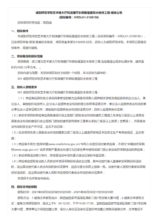 sjb世俱杯官方网站艺术楼大厅和演播厅彩钢板屋面防水维修工程项目磋商公告