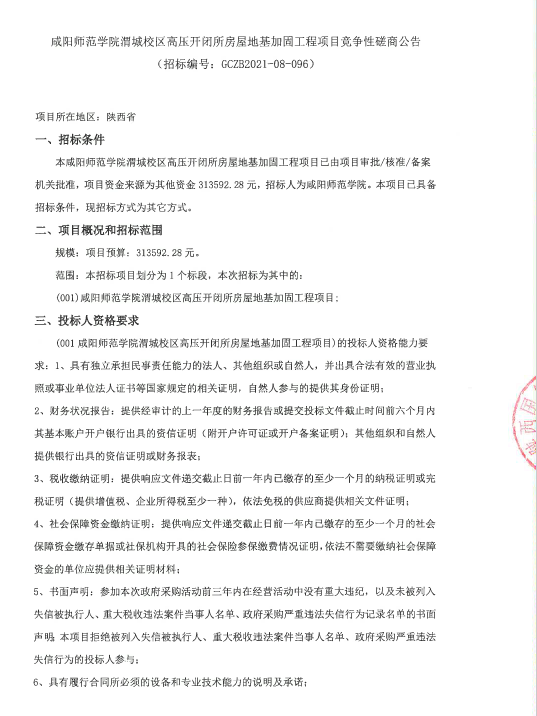 sjb世俱杯官方网站渭城校区高压开闭所房屋地基加固工程项目竞争性磋商公告