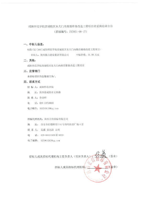 sjb世俱杯官方网站渭城校区东大门内路面维修改造工程项目的采购结果公告