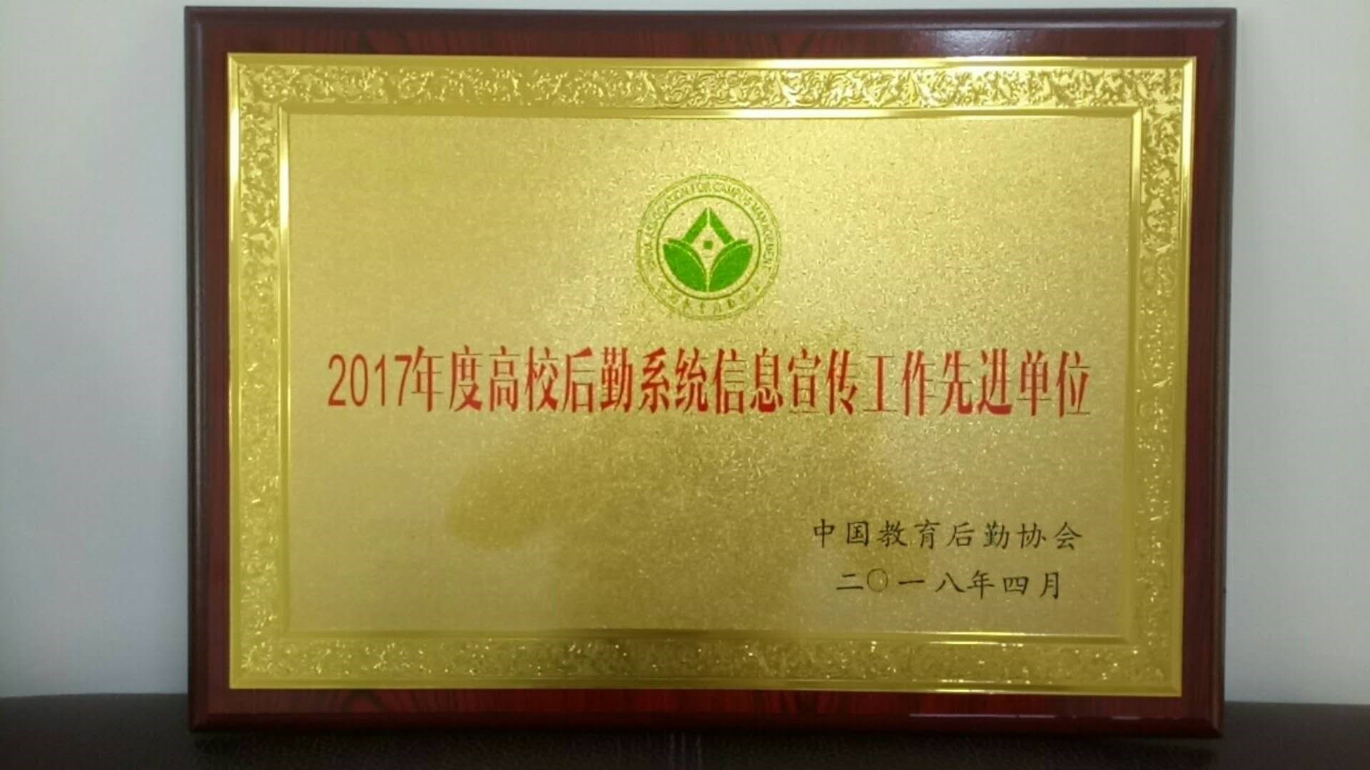 4月26日-4月28日,“全国教育后勤系统信息宣传与课题研究工作(2018)年会暨高校后勤改革发展形势报告会(专题培训)”在浙江嘉兴举行。会议现场发布了“2017年度全国高校后勤研究力排行榜”、“2017年度全国高校后勤宣传力排行榜”,并对教育后勤系统2017年度信息宣传工作先进单位进行了表彰,世俱杯后勤处(集团)荣获“2017年度高校后勤系统信息宣传工作先进单位”称号。