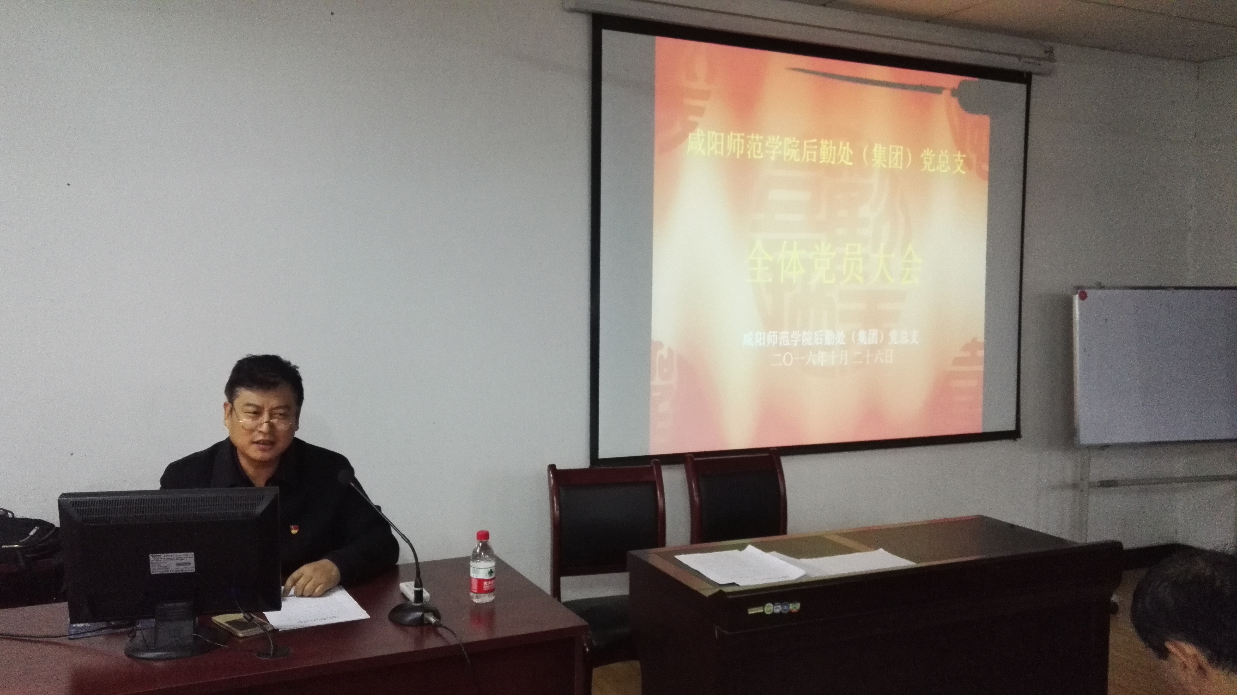 2016年10月26日下午,后勤处(集团)总支隆重召开了全体党员大会。全体党员手持党员证,胸前佩戴着党徽,郑重地参加了党员大会。