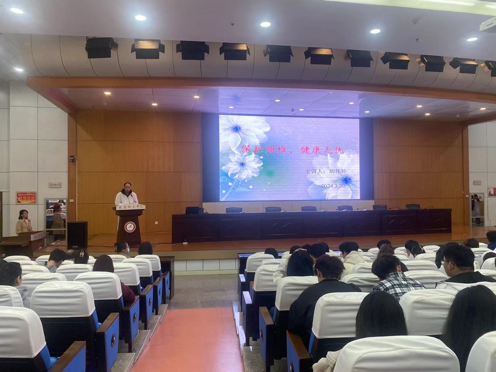 3月20日,学校在1号教学楼报告厅举行“保护颈椎,健康无忧”和春季传染病的防治知识宣传讲座。校医院陈遵江主持讲座。