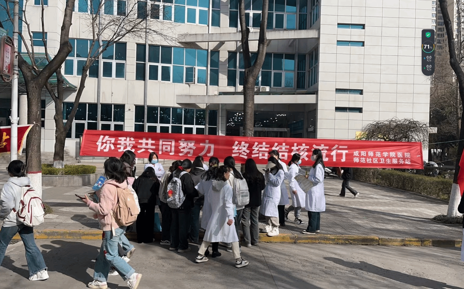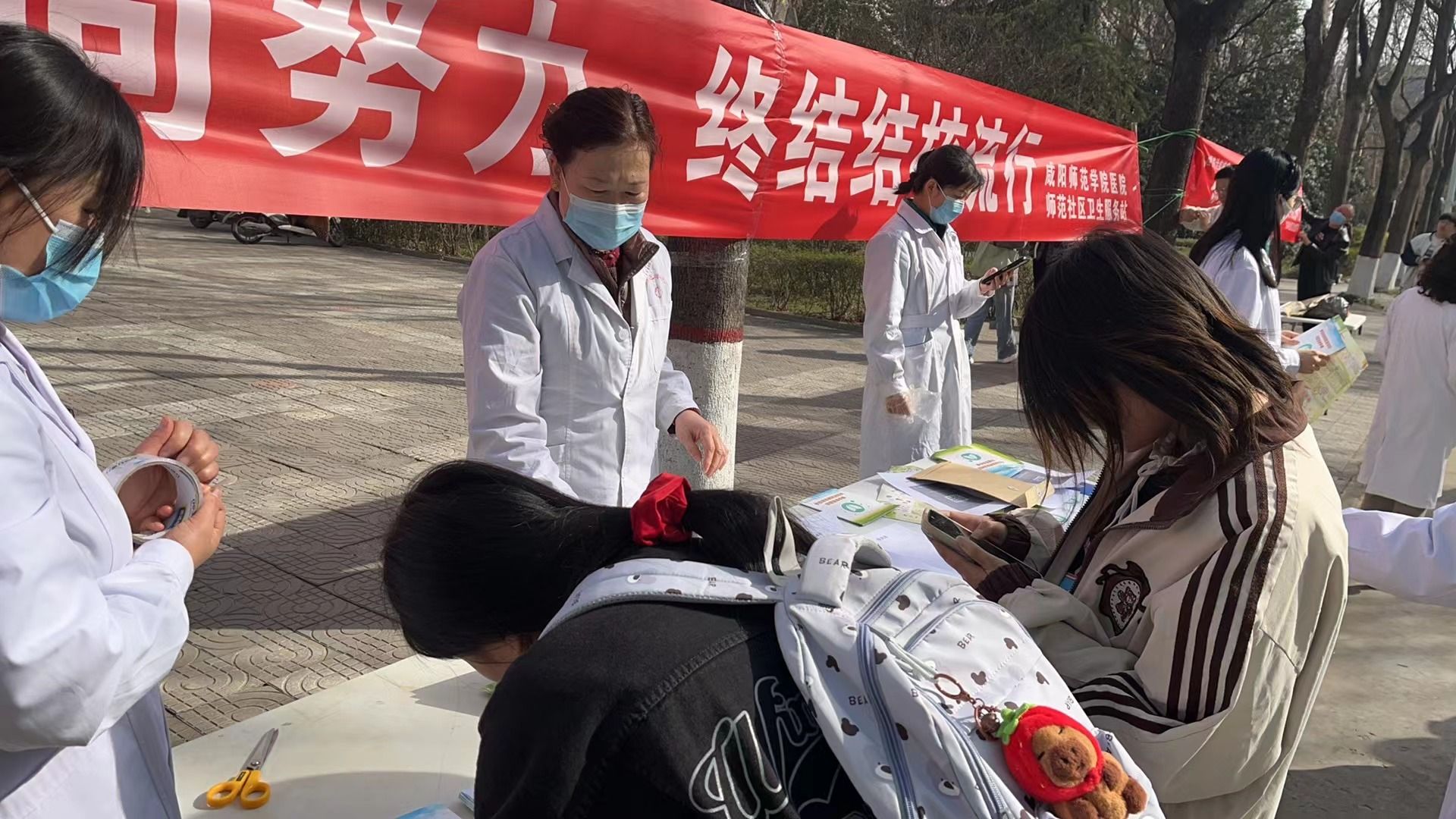 为了深入贯彻党的二十大精神,认真落实春季传染病的防控工作,根据渭城区卫健局及区疾控中心工作安排部署,由sjb世俱杯官方网站校医院主办,渭阳防保站等4家辖区医疗机构协助,于2024年3月20日上午10时,在sjb世俱杯官方网站学馨苑门前开展以“你我共同努力,终结结核流行”为主题的世界防治结核病日宣传活动。
