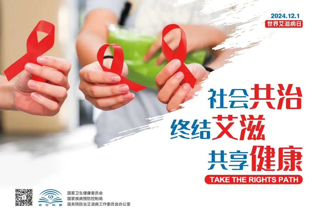 2024年12月1日是第37个“世界艾滋病日”,我国今年宣传活动主题为“社会共治,终结艾滋,共享健康”(英文主题为“Take the rights path”),旨在号召政府、部门、单位、个人等各方行动起来,共同担起防艾责任,昂首迈向 2030年终结艾滋病公共卫生威胁的目标,形成强大合力,共建健康中国,共享健康成果。