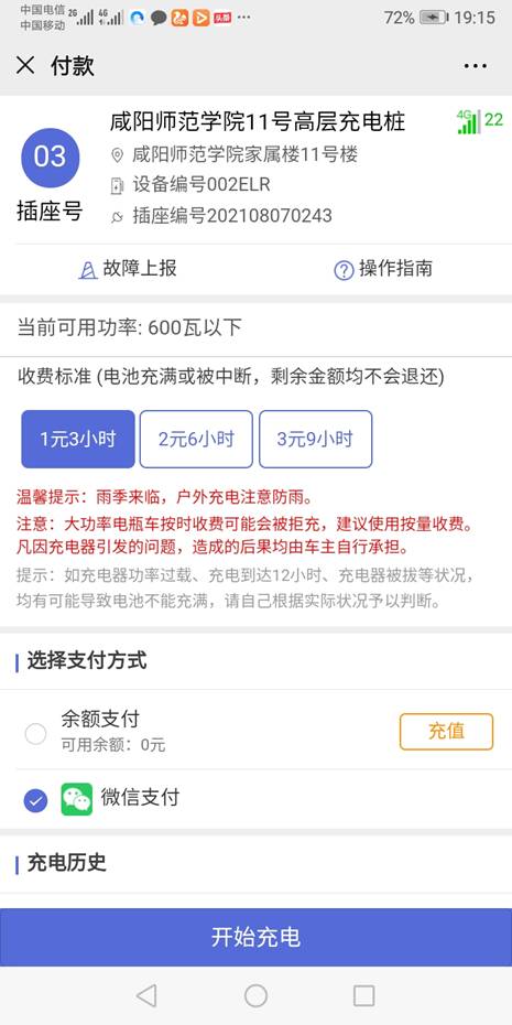 1.本套设备为校园定制款,设定最大功率为600瓦,可满足家用电动自行车300瓦---600瓦充电需要,大型非机动车辆(三轮电瓶车、四轮充电车等)无法使用,敬请谅解。