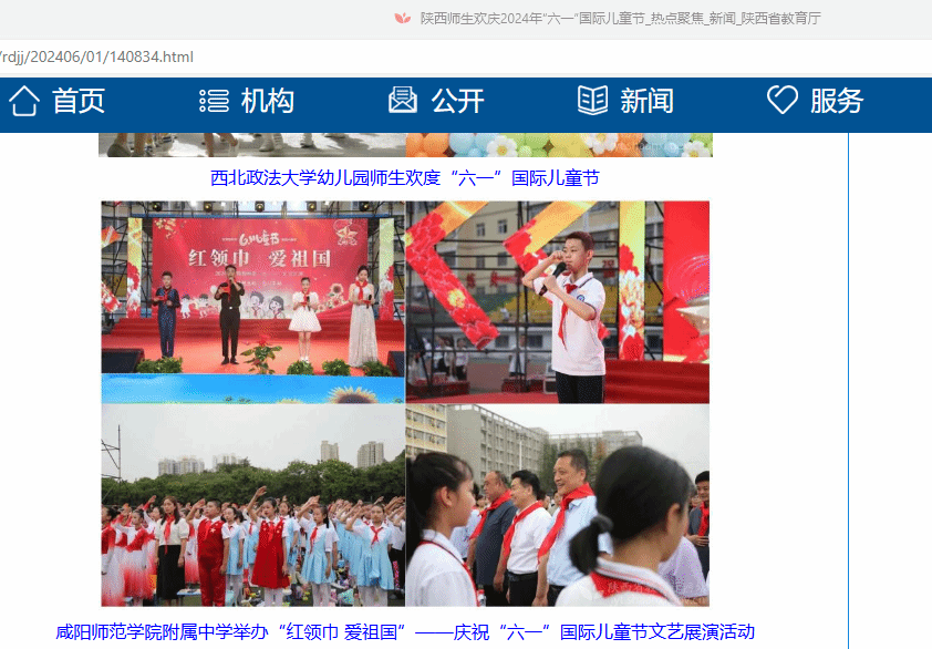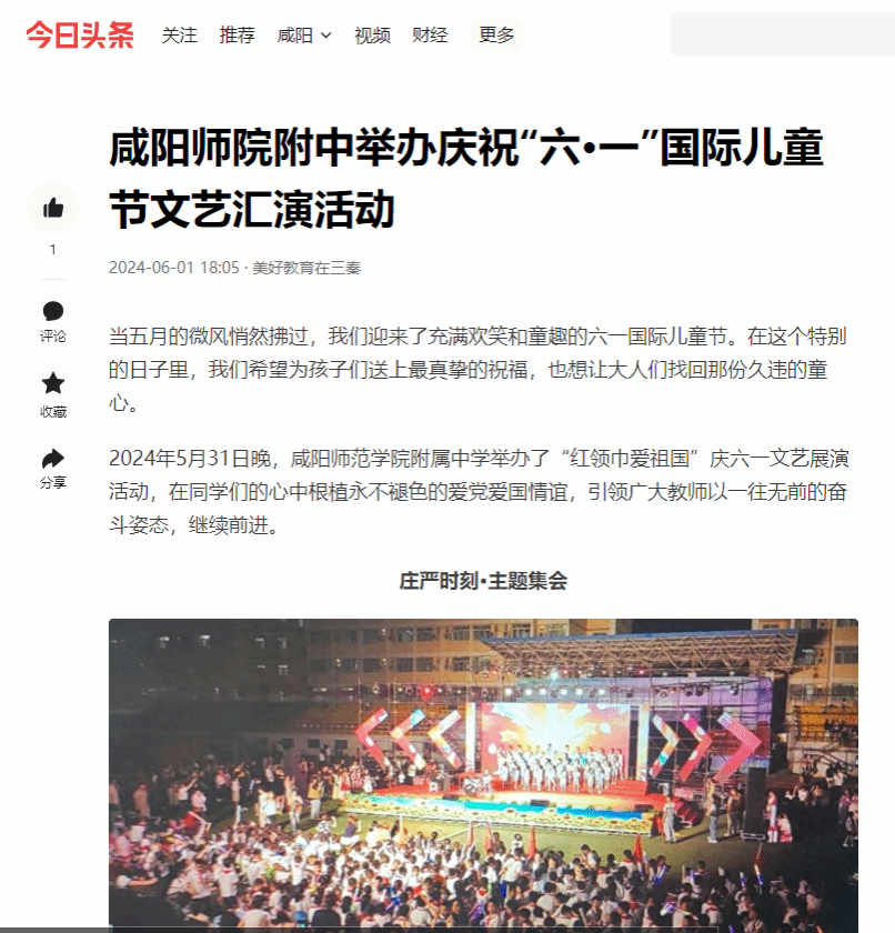 陕西省教育厅、今日头条报道咸阳师院附中举办庆祝“六·一”国际儿童节文艺汇演活动
