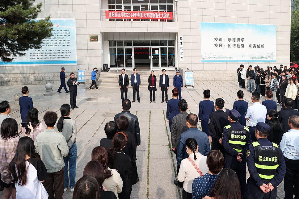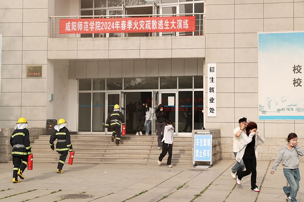 渭城区消防大队、党政办公室、党委宣传部、学生处、后勤保障处、保卫处的主要领导,各二级学院学生工作领导,学生志愿者消防队代表以及各部门消防管理员等共计200余人参与了此次演练。