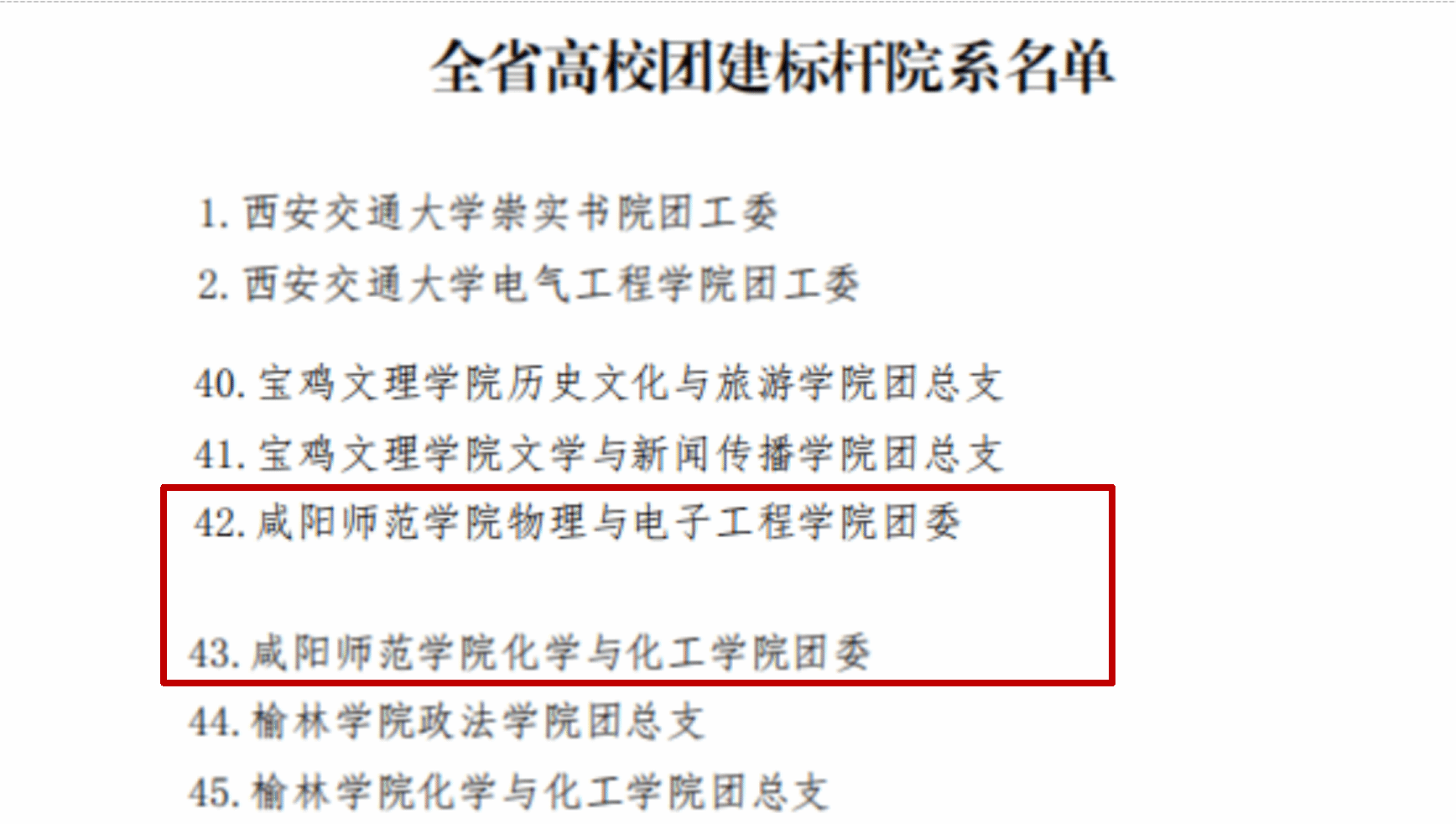 近日,共青团陕西省委、中共陕西省委教育工委联合下发《关于全省学校团建示范培育结果的通报》。世俱杯物理与电子工程学院团委、化学与化工学院团委2个二级学院团委,马克思主义学院思政2001班团支部、教育科学学院2020级小学教育专业本3班团部2个团支部顺利通过全省高校团建示范验收。
