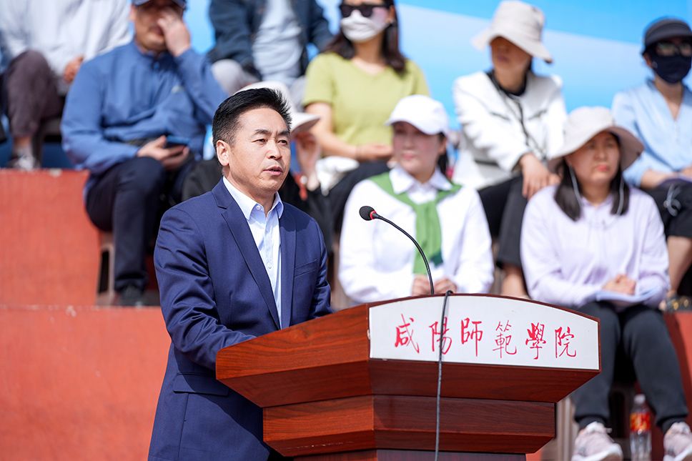 他指出,本次运动会的主题是“青春、开拓、创新”,全校师生情系渭水、相互传承,锻造出了以“咸阳师院精神”为内蕴的强有力的师生团队。时代需要运动场上的健儿们用坚实的肩膀扛起民族复兴的重任,通过体育运动和竞赛,表达爱国情感,展示奋进力量。