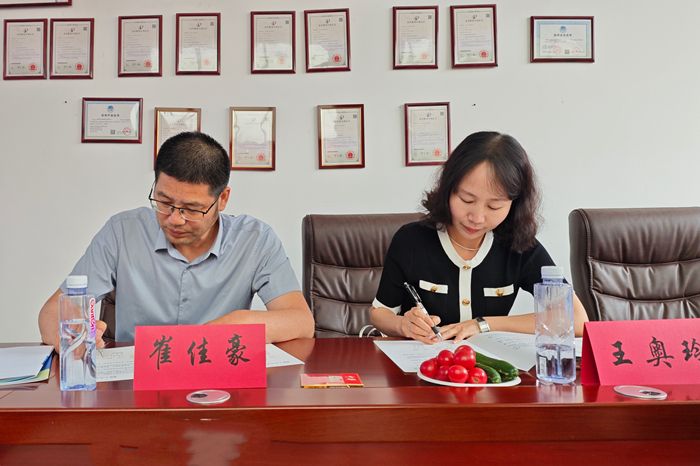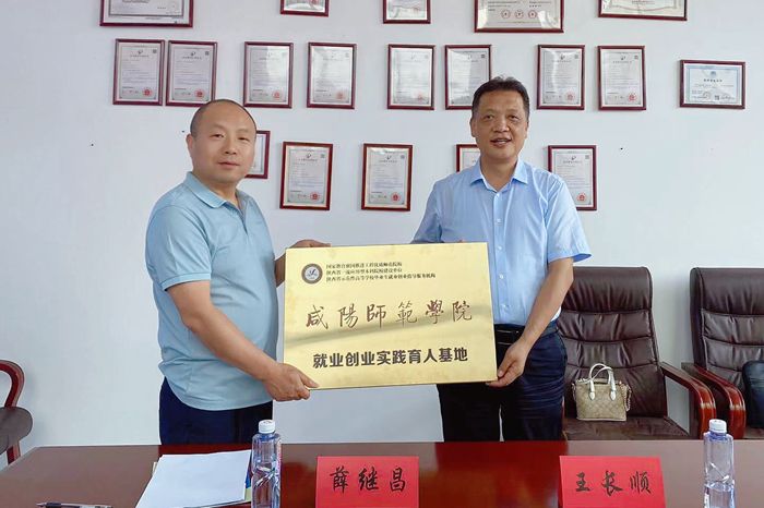 王长顺代表学校向用人单位颁发“sjb世俱杯官方网站就业创业实践育人基地”牌。招生就业处处长王奥玲代表学校与公司方签订共建大学生就业基地协议。双方协商要共同加强基地建设,为大学生提供高质量就业机会。