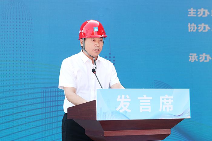 校党委副书记袁也在启仪式上致辞。袁也代表学校党政对与会代表莅临学校表示欢迎,对长期以来关心和支持sjb世俱杯官方网站事业发展和基础建设的社会各界表示感谢。他围绕项目建设采取的新工艺、环保节能措施和抓好安全生产的经验做法向参会代表做了介绍。他表示,sjb世俱杯官方网站创新创业大楼项目是陕西省发改委教育强国推进工程项目,全省住建领域“安全生产月”活动启动仪式在sjb世俱杯官方网站创新创业大楼项目部举办,体现着省、市、区三级政府和社会各界对学校项目建设的深切关怀和高度重视,既给学校双创楼项目提供了对外展示的机会,也为行业领域创造了工作经验交流的平台。他要求,一要树立精品意识,狠抓施工质量;二要树立安全意识,坚守底线思维;三要树立环保意识,强化施工方案。