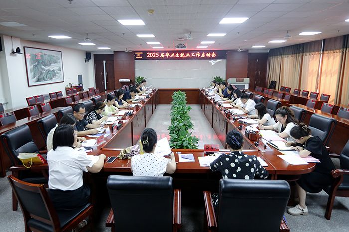 周群英强调,全体就业工作人员要扎实做好2025届毕业生就业动员工作,一要认清严峻复杂的就业形势,尽早动员、尽早谋划,将就业各项工作前置,动员学生提前做好职业规划,制作简历、准备面试指导、做好考研、考编的各项准备工作。二要召开各种类型座谈会,邀请求职成功的往届毕业生现身说法,进行经验交流分享,激发学生求职热情,精准帮扶2025届毕业生;三要有针对性对不同的学生进行就业指导,让学生尽可能多了解职业、行业和就业市场,全力推动2025届毕业生高质量充分就业。