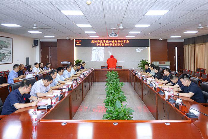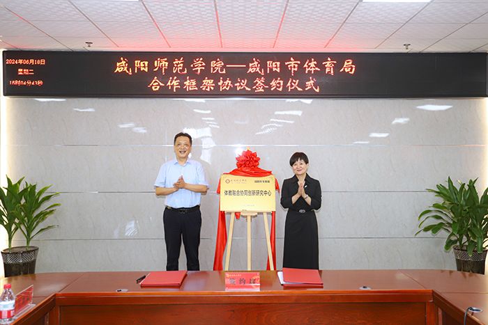 6月18日,sjb世俱杯官方网站——咸阳市体育局合作框架签约仪式在世俱杯第三会议室举行。世俱杯校长王长顺,咸阳市体育局局长刘杰、咸阳市体育局副局长王景华、郭美娟,咸阳市青少年体育运动学校校长许峰出席仪式。副校长范广主持仪式。