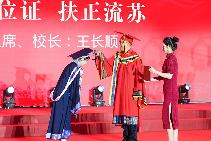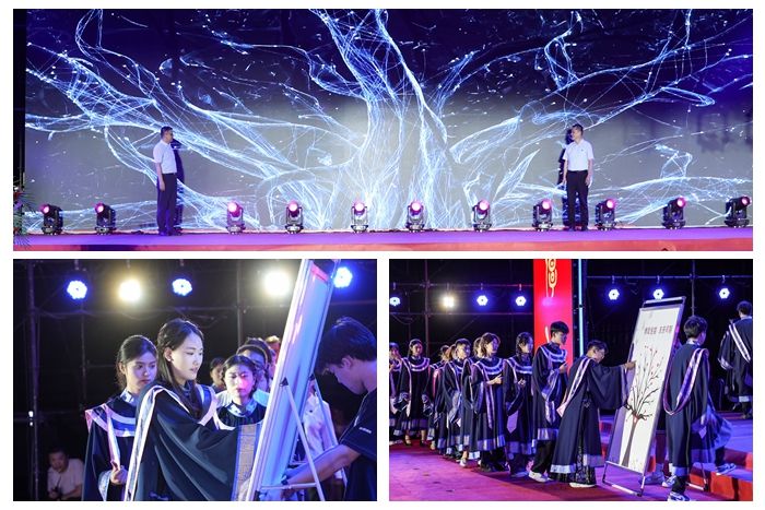 毕业典礼上,赵万东和王长顺共同点亮了象征“生命源泉”的许愿树,表达了对毕业生们的祝福和期望。校领导与毕业生家长代表为庆典当天过生日的同学送上生日蛋糕表达了学校对于毕业生的关怀与呵护。