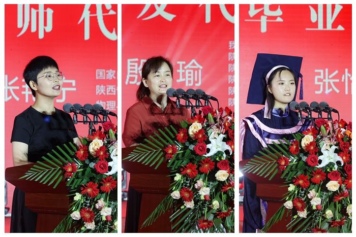 毛龙灿宣读了《关于准予2024届毕业生杨清然等4730名同学毕业的决定》《关于授予杨清然等4539人学士学位的决议》。袁也、周群英、毛龙灿以及教师代表、学生服务人员代表、其他行业代表先后为校级优秀毕业生代表、优秀毕业生干部、考研优秀代表以及西部计划志愿者颁发荣誉证书和奖杯。物理与电子工程学院张艳宁博士作为教师代表发言,外国语学院2006届校友殷瑜作为校友代表发言,化学与化工学院张怡然作为毕业生代表发言。