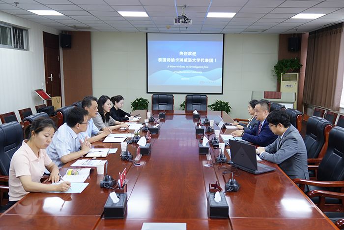 7月16日下午,泰国诗纳卡琳威洛大学中国中心负责人宋建达一行来世俱杯交流访问,校长王长顺亲切接见了代表团一行。