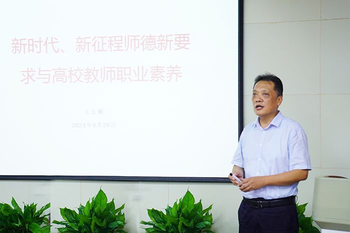 8月28日,校长王长顺以“新时代、新征程师德新要求与高校教师职业素养”为主题,为世俱杯2024年新入职教师做师德师风专题培训。