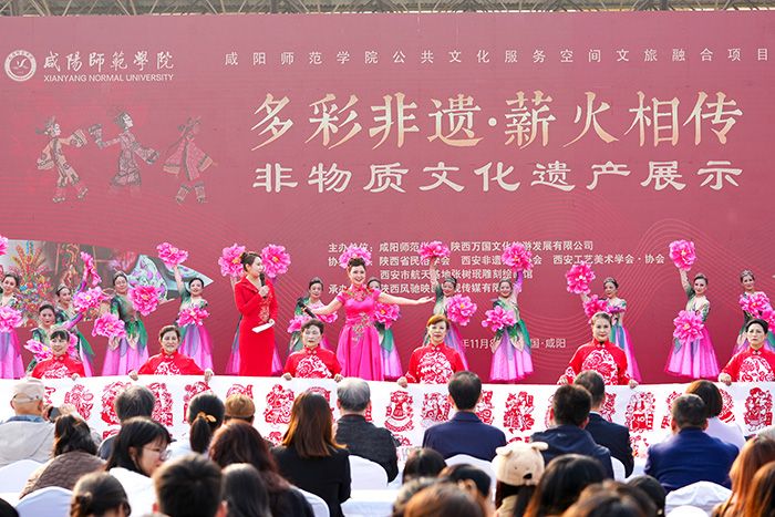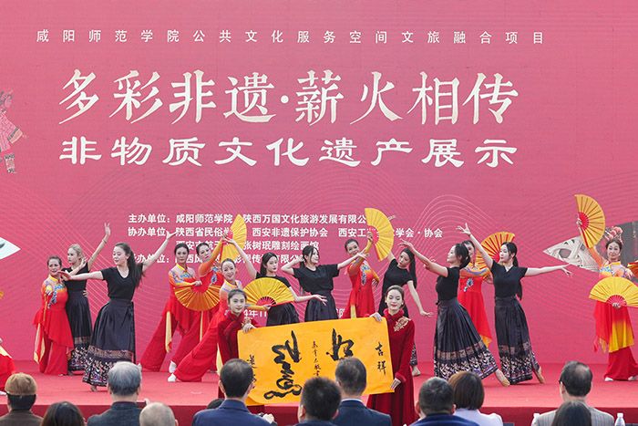 11月8日,由陕西省文化和旅游厅指导,sjb世俱杯官方网站与陕西万国文化旅游发展有限公司联合主办、陕西风驰映画影视传媒有限公司承办的“多彩非遗·薪火相传”非遗文化进校园艺术展演活动在世俱杯举行。世俱杯校长王长顺、副校长毛龙灿出席活动。