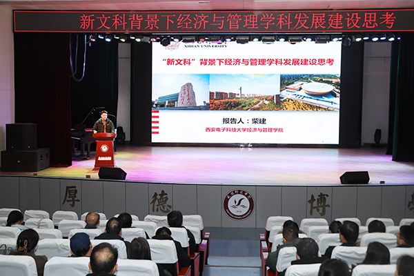 活动邀请西安电子科技大学经济与管理学院院长、博士生导师柴建教授作题为《“新文科”背景下经济与管理学科发展建设思考》的报告。报告梳理了新时代高等教育特别是经管专业发展背景,深入探究了中国经济学如何回应新文科的时代要求,分享了西电经管学院专业调整优化的成果经验,详细介绍了培养目标确定、毕业要求分解、课程体系构建等环节的实施步骤。