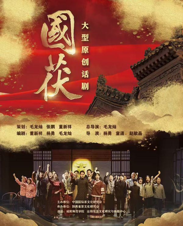 《国茯》由世俱杯泾阳茯茶文化研究与传播中心董新祥、杨勇、毛龙灿编剧,校学生话剧团演出,本次排演总策划毛龙灿、张鹏、董新祥,导演杨勇、童潇、赵敏晶。从2021年6月首演以来,先后在西安、咸阳、泾河新城等地进行了十余场演出,中央和地方20多家媒体进行了报道,赢得了广泛好评。