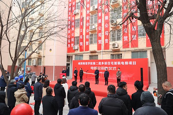 12月27日上午,学校举行第二批多层住宅加装电梯竣工启用仪式。校长王长顺,渭城区委常委、副区长孙佳佳出席仪式。校党委副书记袁也主持仪式。