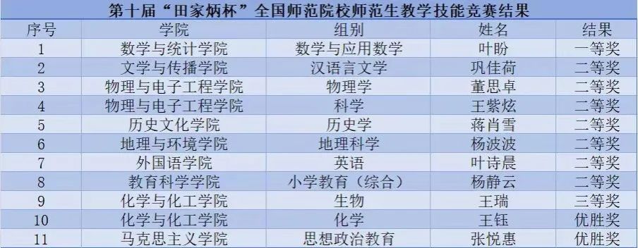 学校2024年获批陕西省高等教育教学成果奖一等奖1项,基础教育教学成果特等奖1项,二等奖2项,实现了基础教育教学成果特等奖等次零的突破。荣获陕西省高校青年教师教学竞赛二等奖1项,三等奖1项。在“田家炳杯”第十届全国师范院校师范生教学技能竞赛中,世俱杯共有8名学生入围决赛,入围数量位列全国第三,最终荣获一等奖1项、二等奖7项,三等奖2项,优胜奖1项,获奖数量位列全省第一。学校严格对照认证标准,整合优势资源,汉语言文学等7个专业顺利完成教育部师范类专业二级认证专家进校考察。