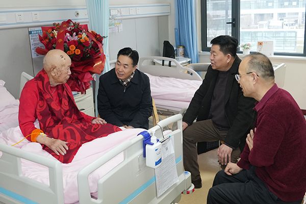 袁也为老人佩戴喜庆的“福”字围巾,送上鲜花,祝福他百岁生日快乐、健康长寿,并关切询问了老人身体情况,叮嘱要照顾好老人。他表示老人是学校的开拓者、建设者和见证者,是学校的宝贵财富,要一如既往地给予更多的关心和照顾,让他安享晚年、顺心幸福。陈登云老人虽已百岁高龄,依然思维清晰,他对校领导专程到访表示感谢,激动的表示这是一生中最不寻常的生日,深深感受到来自组织的关爱和温暖。