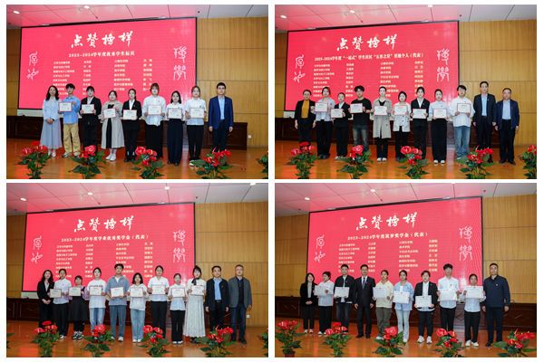 本次颁奖典礼分为“勤学修身”“励志成才”两个篇章,优秀学生干部标兵代表和国家奖学金获奖代表分别宣读了颁奖词。与会领导为上学年度校级优秀辅导员、学生先进集体和个人代表颁发了荣誉证书和奖牌。校级优秀辅导员代表及获奖学生代表共同朗诵了散文《以心为炬,逐光而行》。