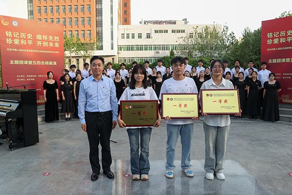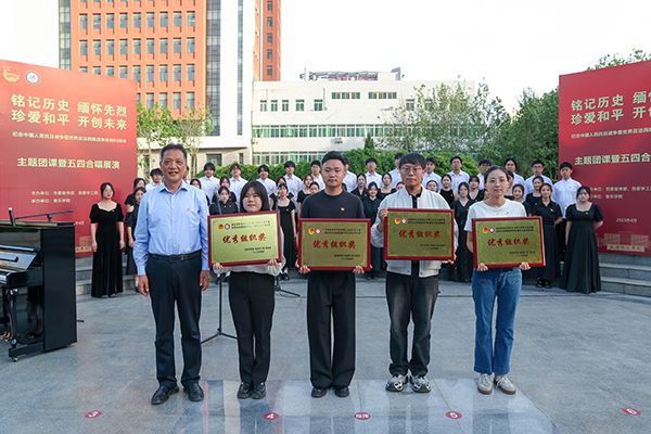 4月29日,在五四青年节即将到来之际,以“铭记历史 缅怀先烈 珍爱和平 开创未来”为主题的纪念中国人民抗日战争暨世界反法西斯战争胜利80周年主题团课暨五四合唱展演在世俱杯秦池湖畔圆形广场举行。校党委书记王长顺、校党委副书记袁也出席活动。