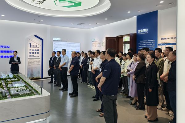 王长顺一行深入三立智能电气智能化生产车间,实地考察了企业的高低压开关柜混合装配线、智能钣金生产线及自动化仓储系统等。