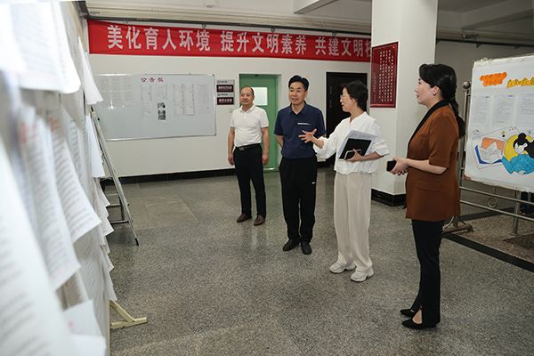 检查组一行先后前往艺术楼、教学楼、图书馆、实验楼、体育馆等区域,实地查看了各学院展板布置、宣传标语、电子屏展示等迎评氛围营造情况,详细了解了各学院在营造“以评促建、以评促改”浓厚氛围方面的创新做法,并对进一步优化迎评氛围营造工作建设提出了指导性意见。检查组一行还深入学校公共区域,对校园整体环境进行了检查,针对发现的问题,要求相关部门立即整改。