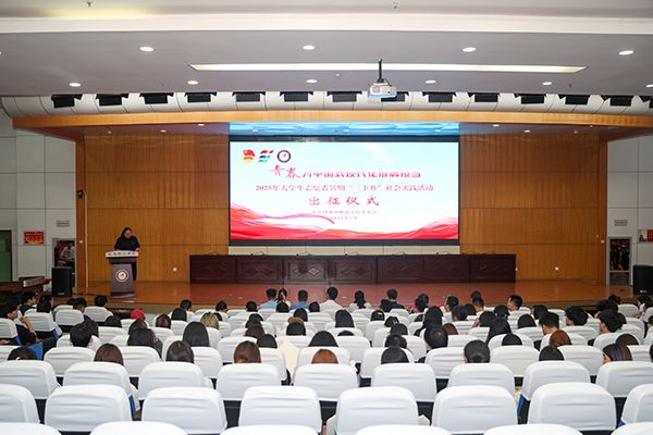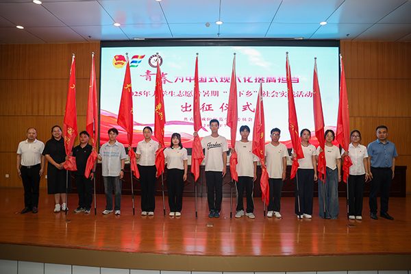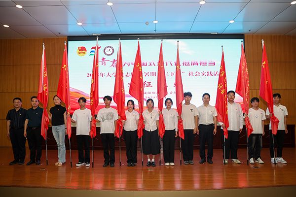 仪式上,全体与会领导向即将出征的实践团队代表庄严授旗;校团委对2025年暑期“三下乡”社会实践工作做了具体安排;学生代表、教师代表先后做了表态发言。