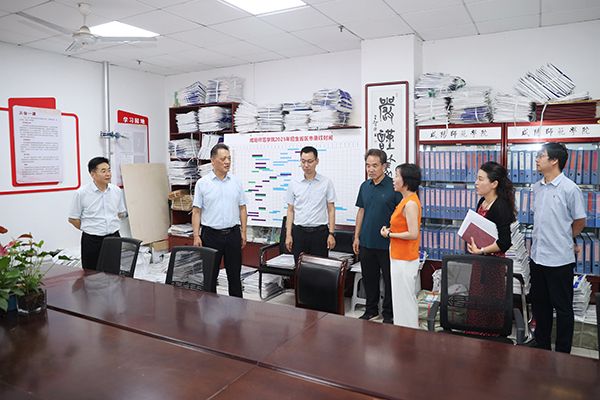 王长顺一行先后前往学校总值班室、党委组织部、人事处、发展规划与学科建设处、教务处、招生就业处、保卫处、双创楼建设工地、国有资产管理处、继续教育学院、后勤保障处、校医院、培训学院、职业技术学院(秦都书院)等地。 每到一处,校领导都与在岗教职工亲切交谈,详细询问暑期工作情况,并向大家致以诚挚的慰问和衷心的感谢。