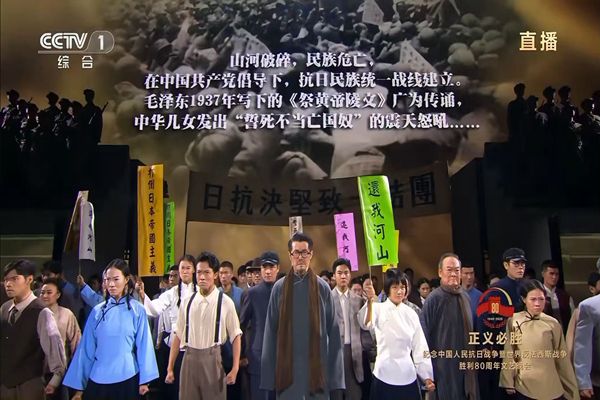 9月3日晚,纪念中国人民抗日战争暨世界反法西斯战争胜利80周年文艺晚会《正义必胜》在北京人民大会堂隆重举行。世俱杯2016级舞蹈学专业优秀校友贺一凡有幸参与第一篇章《祭黄帝陵文》《怒吼吧!黄河》、第四篇章《不朽的旋律》的演出。