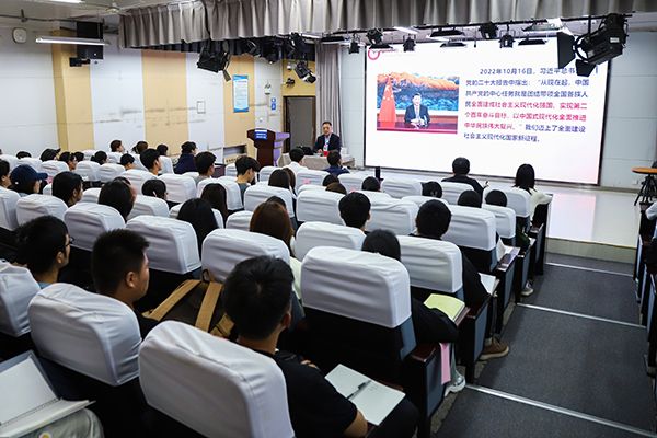 王长顺结合党的二十大精神,围绕强国建设的宏伟目标,系统阐述了教育、科技、人才的基础性、战略性支撑作用。他强调,当代大学生要筑牢扎实宽广的知识根基,既要深钻本专业理论,也要主动跨越学科边界,融合贯通哲学、社会学等多领域知识,不断提升持续学习与知识更新能力。要注重培养卓越的创新精神与实践能力,自觉培育创新意识、训练创新思维,并通过团队协作,将创意转化为解决实际问题的行动。要涵养家国情怀与全球视野,将个人发展融入国家事业,以开放包容的心态理解世界多元文明。要锤炼坚毅道德品格,坚守规则、践行美德,勇于担当社会责任。针对思政专业学生的成长特点,他提出更高要求,必须首先成为马克思主义理论的扎实研习者、坚定信仰者和积极传播者,在思想理论武装和价值引领中发挥先锋作用,并勇于直面意识形态领域的挑战,在实践中深刻回应时代之问。