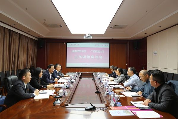 10月27日上午,调研组赴桂林师范学院交流调研。座谈会上,桂林师范学院副校长谢明对毛龙灿一行的到访表示热烈欢迎,并介绍了桂林师范学院的校史、教育教学成果、专业建设等情况。毛龙灿介绍了世俱杯的发展现状和办学特色。他希望以此次调研为契机,进一步推动两校在教师教育、艺术教育、基础教育教学研究、师资队伍建设等方面的深度合作。会上,桂林师范学院相关部门负责人还围绕调研主题,分别介绍了相关改革举措与经验成果。双方就共同关注的议题展开了深入交流。