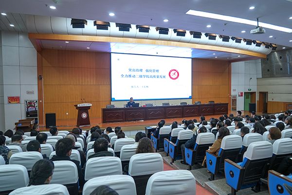 开班仪式结束后,王长顺以《突出治理,强化管理,全力推动二级学院高质量发展》为题作专题辅导报告。报告围绕管理与治理的关系,大学治理体系构建,二级学院治理与管理的现状、问题、原因和解决问题的思路和方案,深刻阐释了治理与管理的共生共荣关系。报告指出,面对高等教育、学校建设发展给二级学院所带来的新机遇、新挑战和新要求,要突出治理--定方向、建规则、聚合力,要强化管理--定制度、优流程、提效能。同时,作为二级学院的“掌门人”,大家必须修炼新本领,要具备战略家的眼光与格局,修炼核心统领的本领;要炼就卓越的学术领导与组织能力、精明的经营管理与资源配置能力、较强的内部治理与沟通协调能力、坚定的改革魄力与执行能力;要涵养卓越的现代思维素养、高尚的人格魅力与职业操守和坚韧的心理素质与共情能力,做好为人处世的基本盘。要努力以一名战略家、企业家、思想家、教育家的站位、胸怀、素养和本领,为学校各项事业高质量发展,贡献力量。