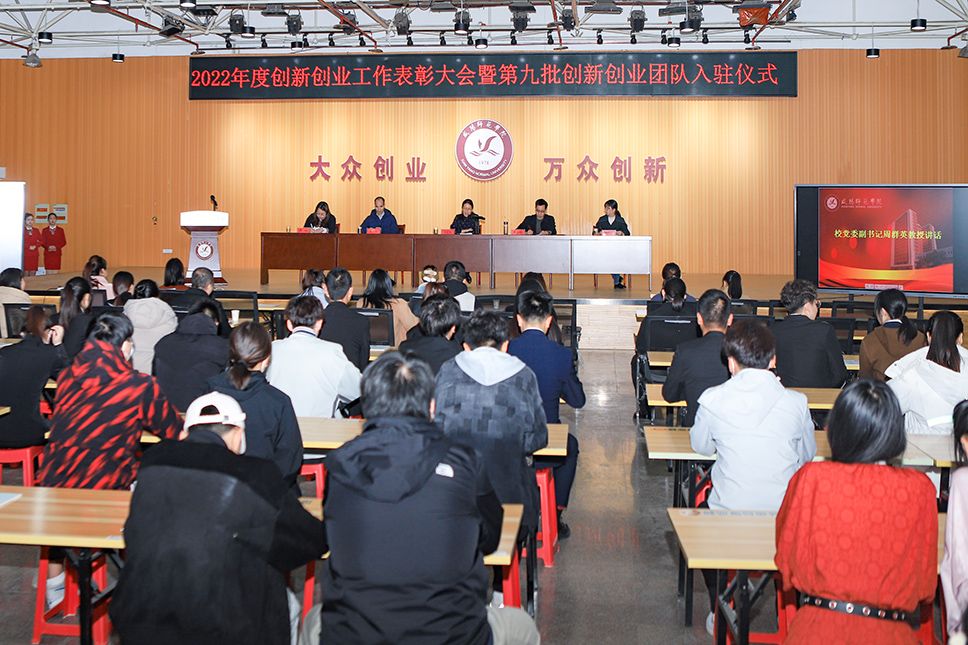 招生就业处、科学研究处、校团委负责人,获奖团队学生、第九批创新创业入驻团队指导教师及全体团队成员参加了仪式。