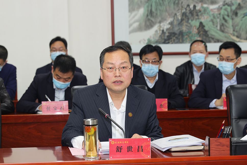 舒世昌主持评估工作汇报会。他代表学院党政领导班子和全体师生对专家组的到来表示热烈的欢迎和衷心的感谢。