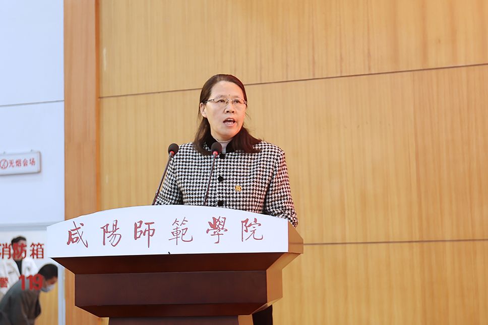 周群英代表学校向受表彰的先进集体和先进个人表示祝贺,感谢在学生工作一线老师们的辛勤工作。她指出,2022年,咸师学子奋楫争先,在青春的赛道上奋力奔跑,用积极乐观的生活态度和不断进取的精神,让自己的大学生活过的丰富又精彩。