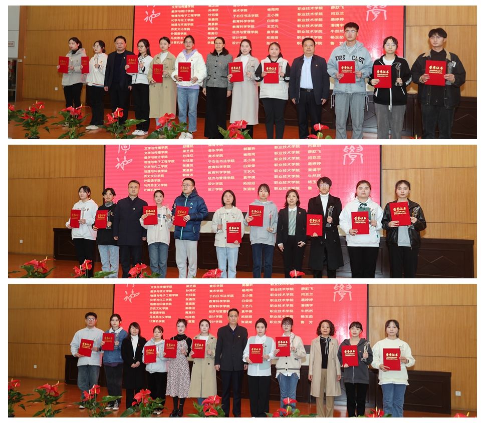 颁奖典礼以“点赞榜样”为主题,分为“勤学修身”“励志成才”两个篇章。与会领导、教师分别为获奖集体和学生代表颁发了荣誉证书和奖杯,学生代表献词“榜样-咸师的力量”,鼓舞着咸师学子拼搏向上,锐意进取。