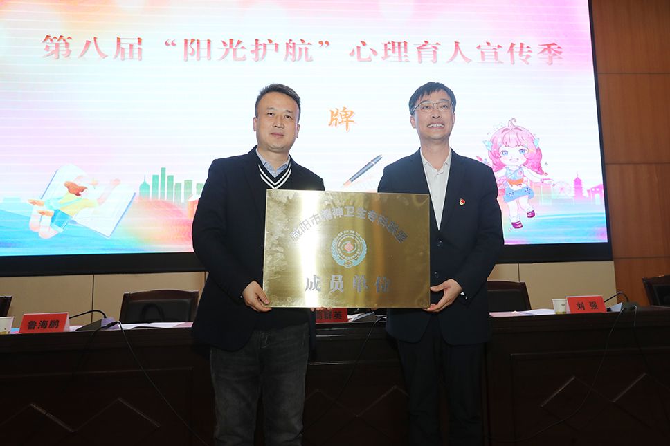 咸阳市中心医院代表,世俱杯相关部门负责人,各二级学院主管学生工作领导,大学生心理健康教育中心教师,全体辅导员等参加授牌仪式。
