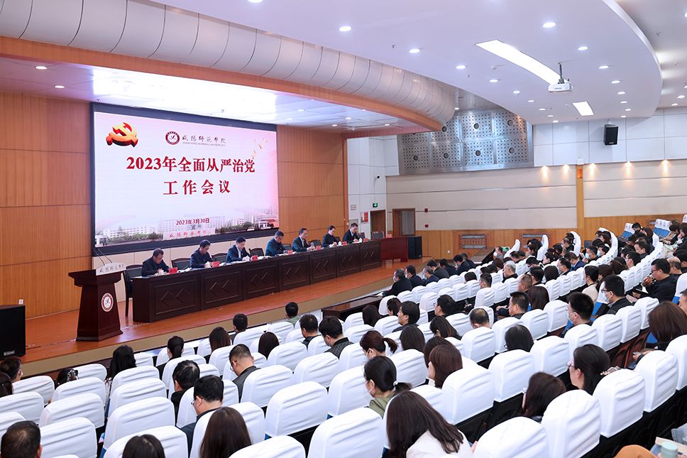 3月30日, 2023年全面从严治党工作会议在学术报告厅举行。会议的主要任务是坚持以习近平新时代中国特色社会主义思想为指导,深入学习贯彻党的二十大精神、二十届中央纪委二次全会和十四届省纪委二次全会精神,认真落实全省教育系统全面从严治党工作视频会议精神,深刻认识“两个确立”的决定性意义,增强“四个意识”、坚定“四个自信”、做到“两个维护”,回顾总结2022年学校全面从严治党工作,安排部署今年工作,以不断增强全面从严治党永远在路上的政治自觉,坚持不懈把学校全面从严治党向纵深推进。