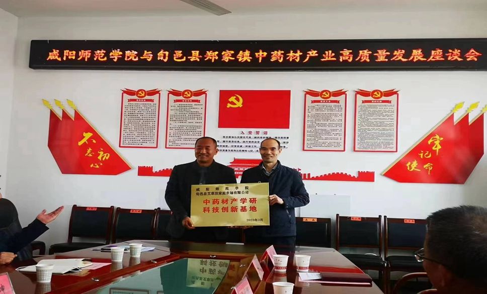 科研处负责人为“sjb世俱杯官方网站——旬邑县艾草洼家庭农场有限公司 中药材产学研科技创新基地”授牌,陕西高校青年创新团队“黄土高原道地药材品种选育与生态栽培创新团队”负责人、化学与化工学院副院长李怀珠博士在签约仪式上对团队基本情况进行了介绍,并就双方合作计划进行了说明。