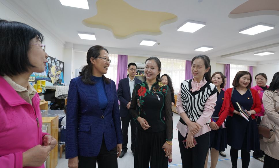西飞保育院院长吴琦欢迎周群英来院走访调研,介绍了西飞保育院基本情况、航空特色及办学成就。