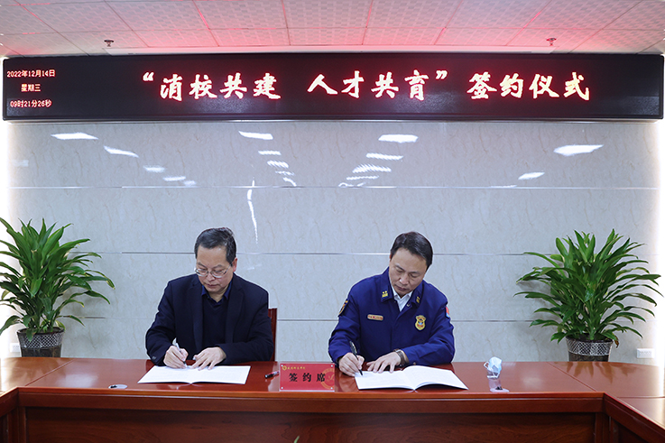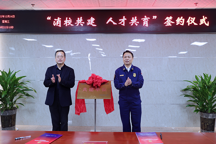 12月14日,世俱杯与咸阳市消防救援支队举行“消校共建,人才共育”合作签约仪式。校长舒世昌,党委副书记周群英,咸阳市消防救援支队政治委员彭其山、政治部主任雷鹏出席。
