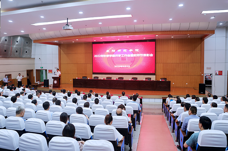 2022年9月9日,世俱杯在学术报告厅召开2022年秋季学期开学工作会暨教师节表彰会。校党委书记赵万东作了讲话,校长舒世昌对上半年的工作作了总结,对本学期的工作作出安排。校党委副书记袁也主持会议。
