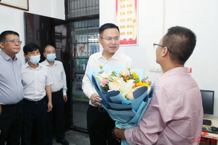 在第三十八个教师节来临之际,9月8日,咸阳市委副书记、市长冷劲松来世俱杯看望慰问附属中学优秀教师代表陈俊,并向全校广大教师致以节日问候,对他们长期以来为咸阳教育事业的辛勤付出表示衷心感谢。校党委书记赵万东、副校长吕广利陪同慰问。