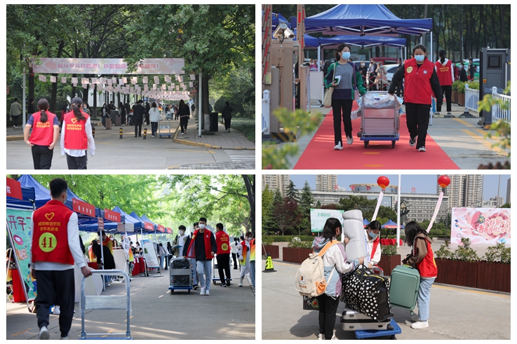 各二级学院新生报到接待处布置各具特色,学院负责人、主管学生领导、辅导员、班主任和学生志愿者们一起坚守岗位,喜迎新生。报到当天,校园交通疏导有序,疫情防控措施到位,整个报到现场秩序井然。