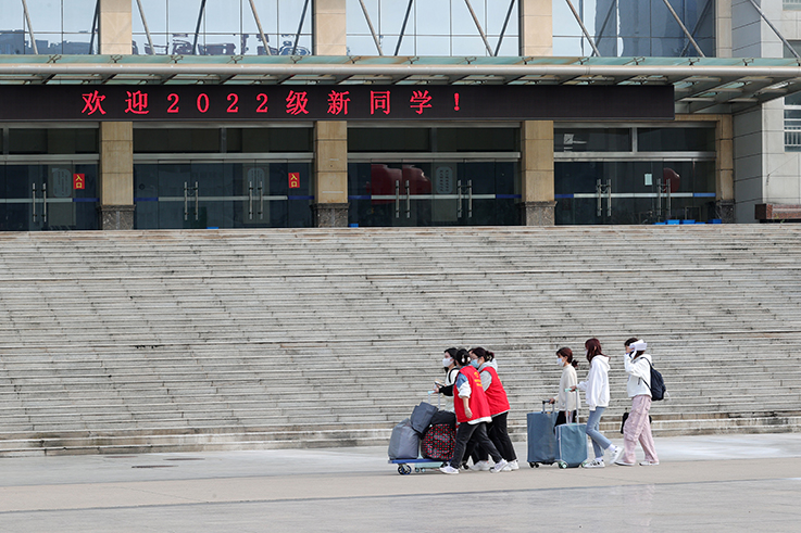 校党委书记赵万东,校党委副书记袁也、周群英,副校长吕广利、毛龙灿、张弘深入新生接待点,现场查看新生报到流程、防疫措施落实情况,并与新生亲切交谈,勉励他们珍惜韶华、继续奋进,不断提升综合素质,练就过硬本领。 校领导要求,各有关部门、二级学院要高度重视疫情防控常态化形势下的迎新工作,要坚持以生为本,为学生报到入学提供周到细致的服务,让新生真切感受学校的关爱和温暖,确保每一位新生都能顺利报到。迎接新生的干部师生在为新生提供服务的同时也要做好个人防护。
